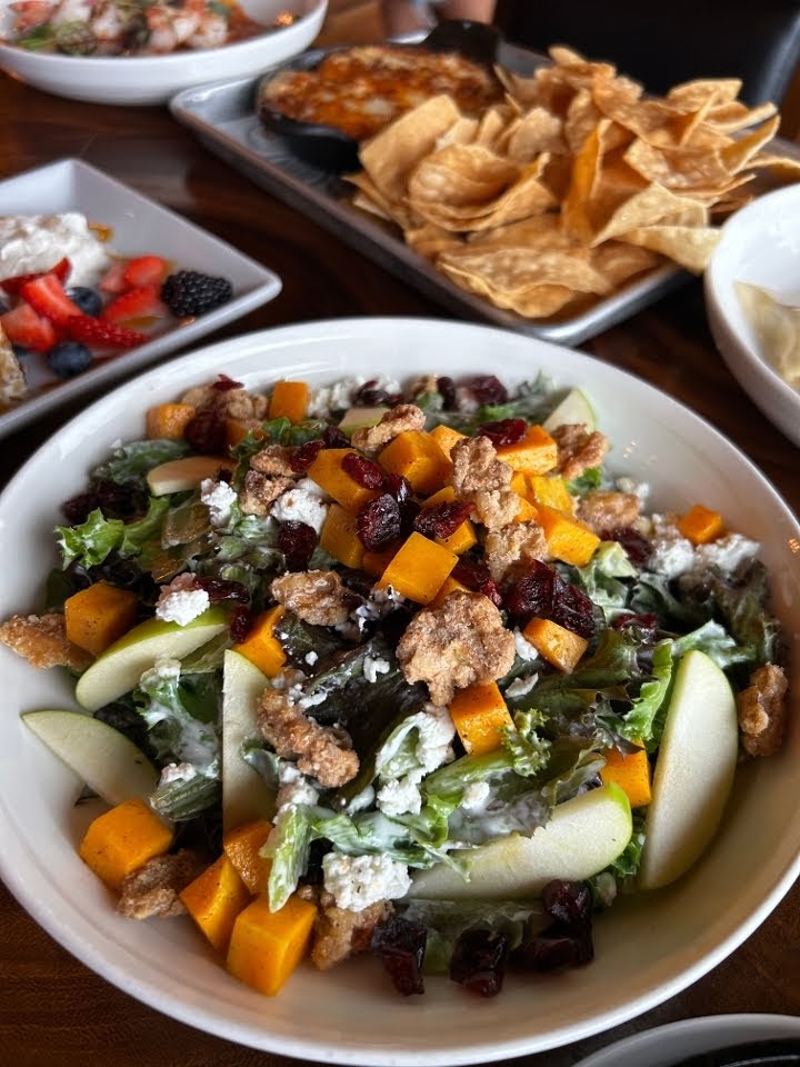 The menu reflects this spirit perfectly: it’s diverse without feeling overwhelming, blending comfort classics with fresh, thoughtful twists. From the playful crunch of fried pickles and crispy calamari to the layered flavors of flatbreads and power bowls, there’s a thoughtful intention behind every bite. Sweet moments surface too, like when the rich chocolate cake or a perfectly balanced mimosa finds their way to your table.